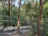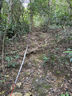 繼續沿着車路往下行,來到大潭上水塘,步過石橋及主壩(法定古蹟),往大風坳方向前行一段,來到路口,轉右步進港島林道 - 美景路段,沿着柏架山上引水道前行。這段引水道有點特別,一時它會在車路左邊,一時會在右邊,不斷在車路下方左穿右插,參考昔日地圖,林道是在引水道建成後再加建,所以出現這個現象。踏過一小段上斜路段,來到一個彎位,離開車路,踏上左邊的石級,沿山徑往上行,山徑左邊的河道屬於柏架山上引水道其中一部份。來到一個十字路口,轉入往大潭水塘的林道,前行數步轉左步進小徑,下降至大潭峽。