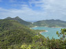 繼續沿着郊遊徑前行,不久之後下降至山坳,右邊有一條小徑可以登上田下山。繼續沿着郊遊徑往上行,來到郊遊徑最高點,在此離開郊遊徑,踏上右邊小徑,登上田下山,山頂建有標高柱#603,可以遠眺東龍島、香港島、九龍半島及清水灣一帶(附上照片,約1.5MB)。
