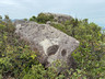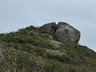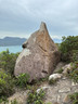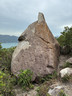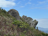 沿着南面山脊小徑下降,經過石堆,來到一個大石鼓前,取道左邊小徑落山,前往郊遊徑。於半路中途,留意右邊有一條小徑入口,在此暫時離開落山小徑,步入右邊橫山小徑,前行一小段,往左前方下望,山坡下有一座錐體石柱,它就是「龍貓石」。沿着小徑下降至龍貓石,拍拍照後沿原路返回落山小徑,不久之後接上郊遊徑。