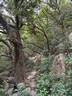 來到清水灣道及相思灣路交界,沿着指示踏小徑往上行,不用半小時便到達釣魚翁南面標距柱C3106附近的山坳,抬頭望向釣魚翁山頂,不少遊人正在拍照及休息。沿着郊遊徑前行,經過標距柱C3107,再下降一小段,郊遊徑右邊有一個路口,在此離開郊遊徑,沿着小徑往上行,約五分鐘後便到達大赤沙頂的標高柱#4011.07。沿原路返回郊遊徑,繼續沿着郊遊徑前行,附近有一個名為「上流灣石陣」的香港具考古研究價值地點,有興趣的朋友可以嘗試找找看。探訪田灣仔/田環仔標高柱#4011.03後,便是一段畢直的石級,下降至蝦山篤(早年又稱為「黑心叾」/「蝦山叾」)。早年蝦山篤有小徑通往西面的上流灣,隨着1990年代中期上流灣村被遷徙及新界東南堆填區開始運作,小徑已經被截斷。